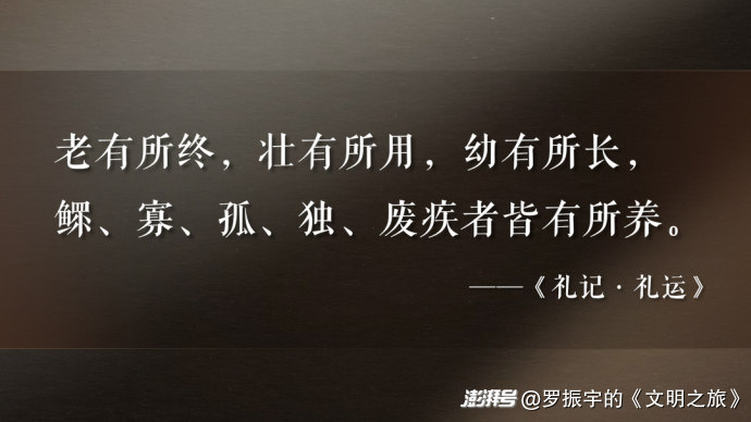 畢竟,傳統(tǒng)的中國讀書人都能背誦《禮記》上的那段話嘛:什么是大同社會?就是“大道之行也,天下為公。選賢與能,講信修睦。故人不獨親其親,不獨子其子,使老有所終,壯有所用,幼有所長,鰥、寡、孤、獨、廢疾者皆有所養(yǎng)?!边@說的,不就是全民福利制度嗎?