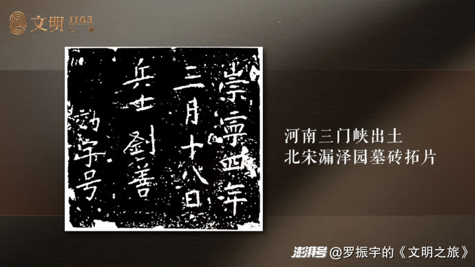 那這是不是像一般的面子工程那樣,在開封城搞個樣板就算了?不是的。蔡京是真把它推廣到了全國。朝廷規(guī)定:凡是千戶以上的城鎮(zhèn),全部都要設(shè)立這三個機構(gòu)——居養(yǎng)院、安濟坊、漏澤園。現(xiàn)在去查史料,很多地方志上都有設(shè)立居養(yǎng)院和漏澤園的記載。不僅有史料證據(jù),還有考古證據(jù)哈:上世紀80年代,河南三門峽市——北宋的時候這里是陜州——就發(fā)掘出北宋的一個漏澤園遺址,發(fā)現(xiàn)了849座墓葬,規(guī)模不小啊。來,給你看一張墓磚的照片。