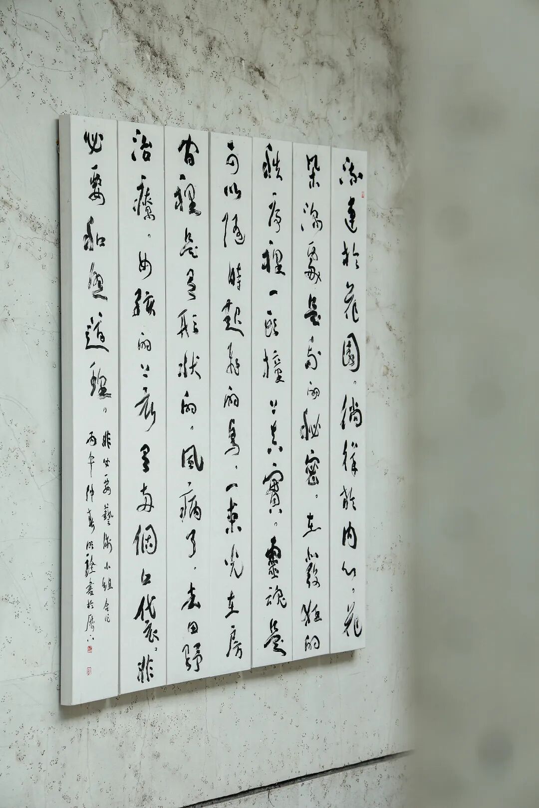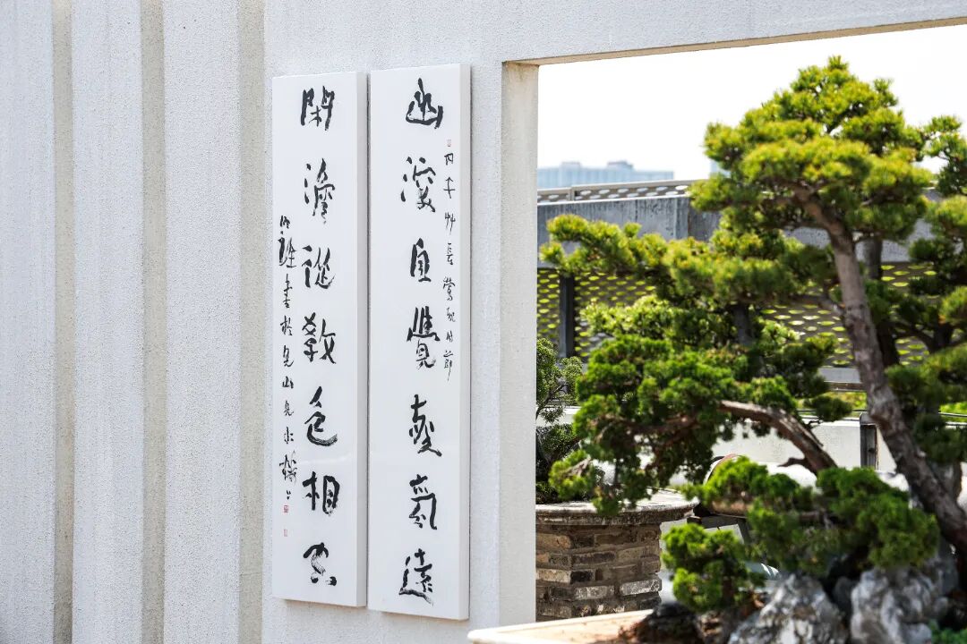 一場融合書法與人文思考的藝術(shù)展覽——“春天的花園——于明詮情境書寫展”近日在上海得丘·上海插畫小鎮(zhèn)對外展出,這一展覽也是一次書法的露天展出。展出空間結(jié)合了園林景觀與盆景藝術(shù),形成古松、青苔、奇石與書法筆墨相映成趣的整體氛圍。