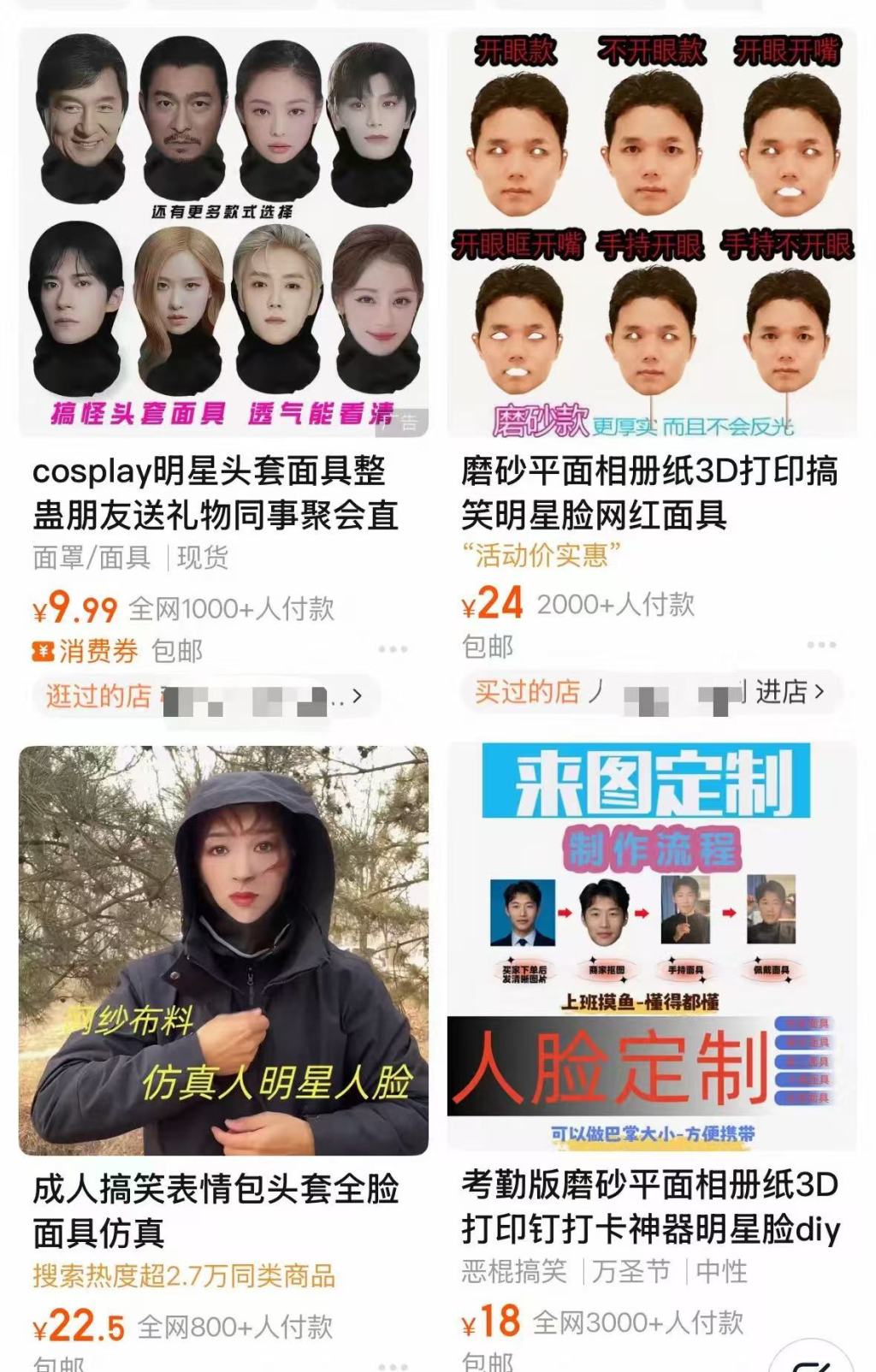 近期,網(wǎng)傳一段素人戴上明星的“人臉面罩”、乍一看十分相像的視頻引發(fā)關注。在評論區(qū),不少網(wǎng)友曬出定制自己、同事或明星的硅膠面罩,用于惡搞整蠱、拍攝短視頻。在電商平臺,不少售賣此類產(chǎn)品的商家稱僅僅用于惡搞,但也有商家稱,其產(chǎn)品有一定幾率可以用于代打卡、破解人臉識別。