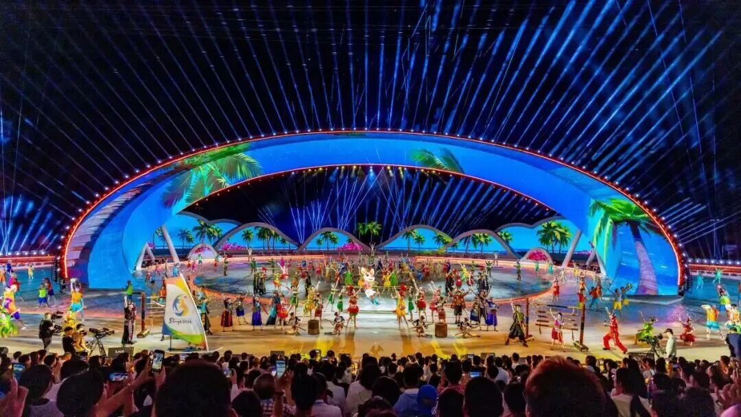 在亞沙公園內(nèi),開幕式已進(jìn)入最后微調(diào)階段。吉祥物“亞亞”活躍于指環(huán)劇場之中,三大篇章文藝表演——“天海燃情”“深海逐夢”“聯(lián)通四?!睂⒂?月22日晚上演。這場全長75分鐘的開幕式,承載著三亞對亞洲體育的莊重承諾。以三亞灣、天涯海角礁石群為天然背景,舞臺(tái)“陽光之環(huán)”與海天線融為一體,實(shí)現(xiàn)“天為幕、海為臺(tái)、沙為席”。海南坡鹿“亞亞”全程串聯(lián),騎沙灘摩托登場,融合黎苗民俗與現(xiàn)代活力,開創(chuàng)吉祥物敘事先河。開幕式上,日出大海意象、沉浸式互動(dòng)、國際化青春表達(dá)、機(jī)器人與數(shù)控光影科技、黎錦苗繡文化植入、全流程綠色低碳等六大核心特色將彰顯“活力、開放、歡樂”氛圍。