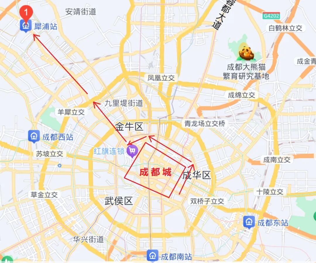 范成大順著西大路,行程“五十里,至郫縣”,這個(gè)距離剛到犀浦位置,時(shí)犀浦已歸屬郫縣,因此他接著寫道:“……本犀浦縣,今廢,屬郫,猶為壯鎮(zhèn)”。范成大的這段行程,完整記載了從成都縣到犀浦縣的路途軌跡。