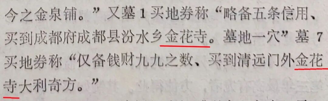 1988年第2期《成都文物》上有位考古界前輩劉致遠(yuǎn),披露了一份“成都三座墳明墓第一次清理報(bào)告”,里面提到西郊營門口附近“三座墳”地帶發(fā)掘了七座明代太監(jiān)墓葬,各墓均出土了買地券。其中墓1和墓7的買地券上赫然出現(xiàn)了“金花寺”三字,這不禁讓人恍然大悟。