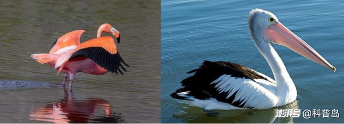 左:火烈鳥 圖片來源:birdnote.org via Matthew Paulson 右:澳洲鵜鶘 圖片來源:維基百科