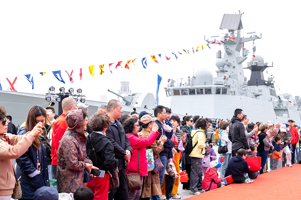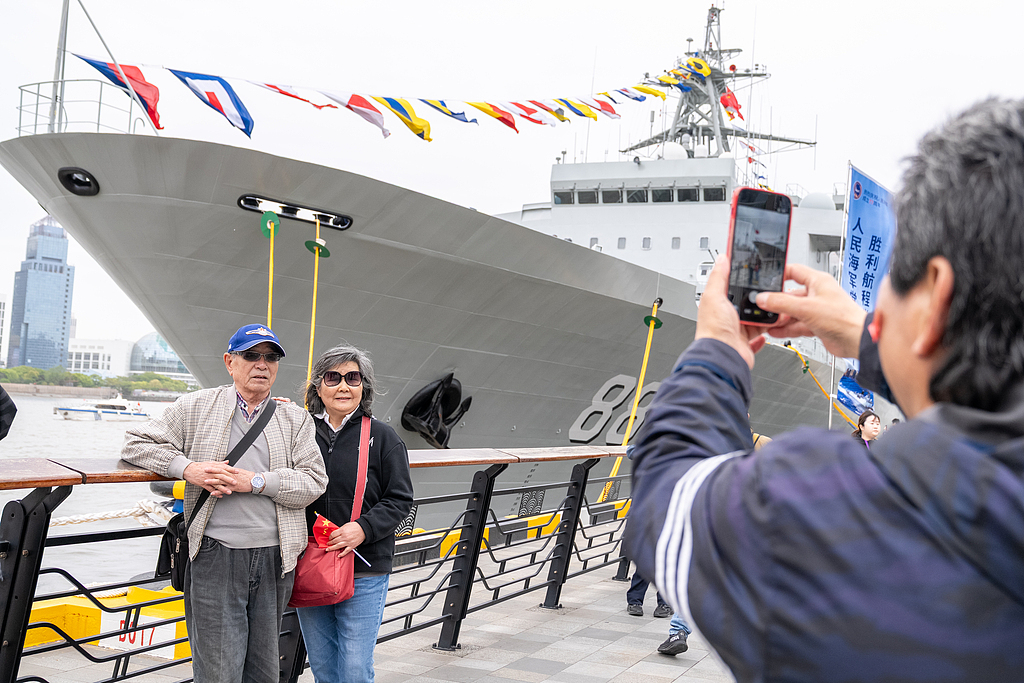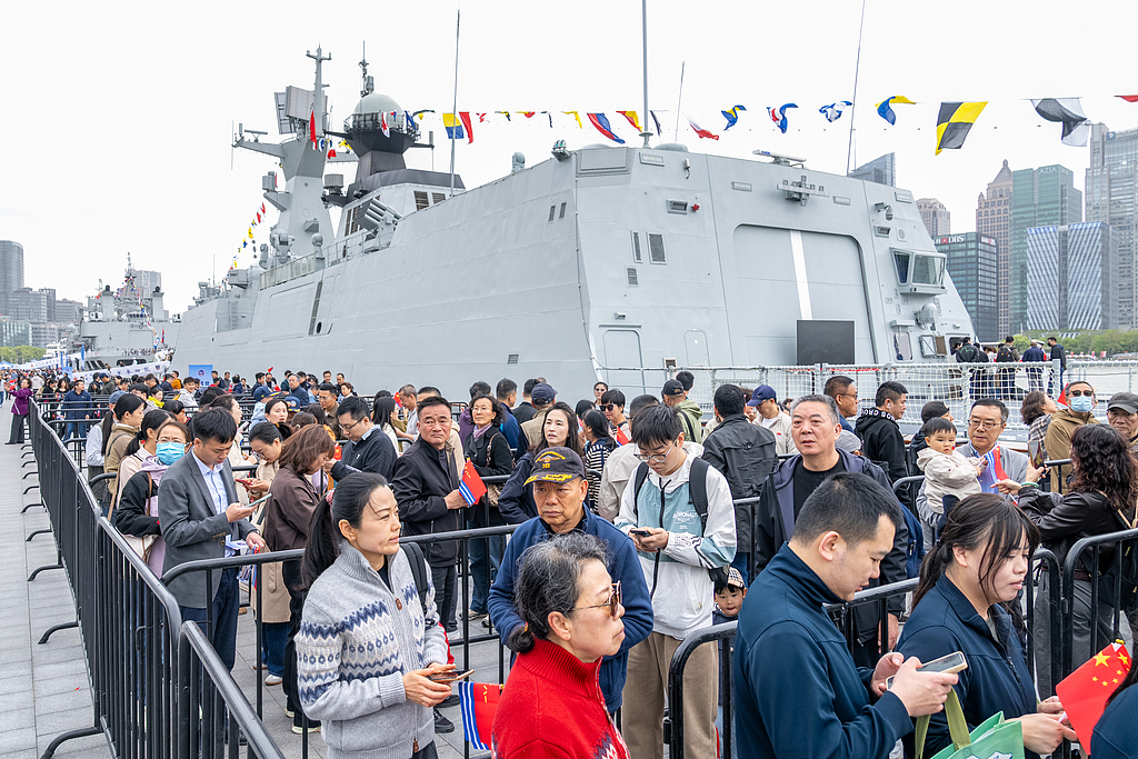 4月21日,上海,海軍艦艇開放日活動(dòng)在上海港國際客運(yùn)中心碼頭(北外灘)和吳淞口國際郵輪碼頭舉行,吸引大批市民前來參觀。