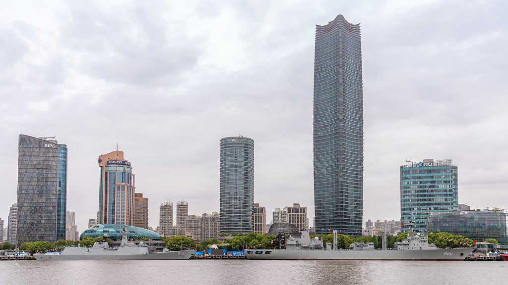 停泊在上海港國際客運(yùn)中心碼頭的海軍阜陽艦、海軍千島湖艦。