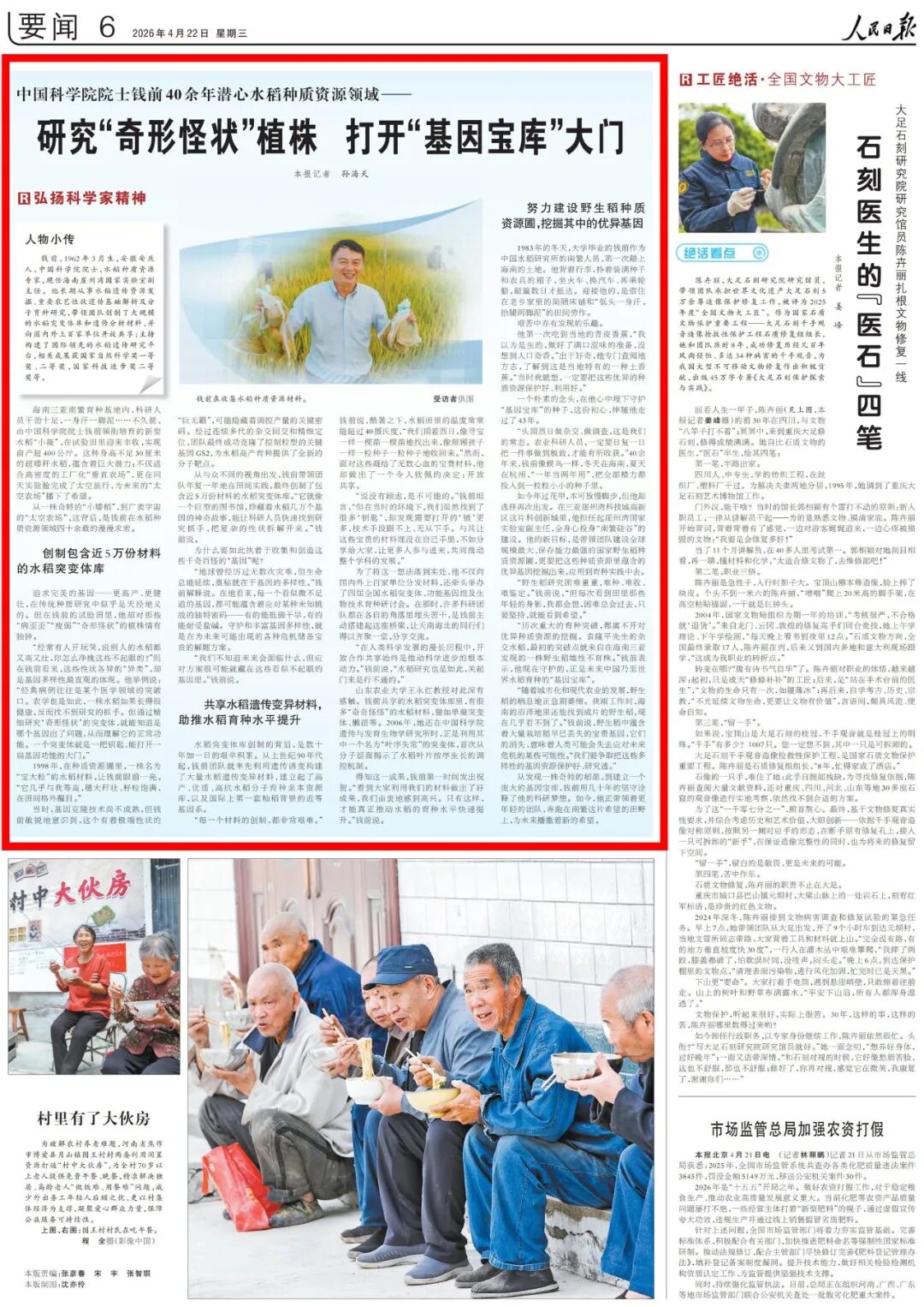 “歷次重大的育種突破,都離不開對(duì)優(yōu)異種質(zhì)資源的挖掘。袁隆平先生的雜交水稻,最初的突破點(diǎn)就來自在海南三亞發(fā)現(xiàn)的一株野生稻雄性不育株?!卞X前表示,他現(xiàn)在守護(hù)的,正是未來中國乃至世界水稻育種的“基因?qū)殠臁薄?/p>