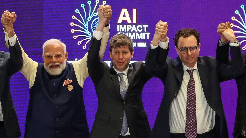網(wǎng)友用ChatGPT Images 2.0生成的OpenAI和Anthropic兩位CEO“牽手照”,真實(shí)情況是當(dāng)時(shí)拒絕了牽手
