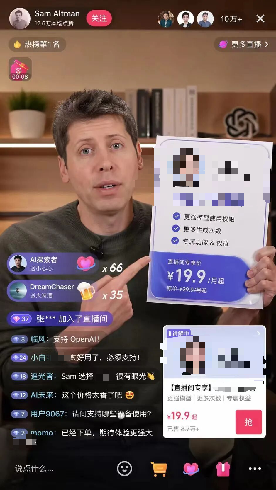 ChatGPT Images 2.0生成的山姆·奧特曼直播帶貨圖(部分內(nèi)容為記者打碼模糊處理)