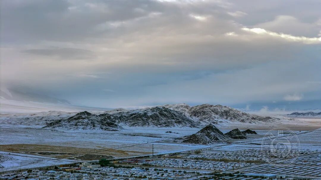 2025年10月15日,拍攝于新疆巴里坤湖邊。清晨的薄霧與雪光,如仙境般飄渺又雄渾。