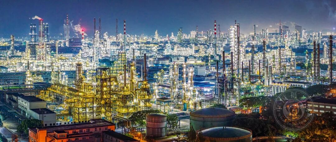 夜幕下的鎮(zhèn)海煉化基地,千萬盞燈火勾勒出龐大的煉化工業(yè)集群。