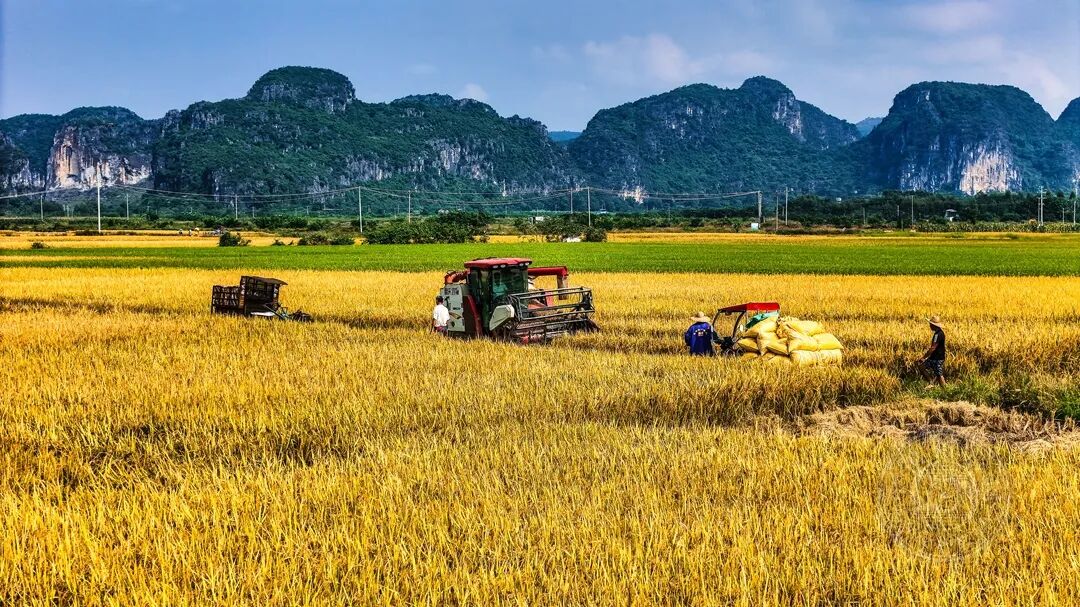 廣西南寧上林縣的清水河九曲灣(覃排半島)這里也是上林著名的田園風(fēng)光打卡地。今秋的上林萬畝垌香米產(chǎn)業(yè)示范區(qū),金色稻浪在喀斯特盆地間翻滾,"廣糧香2號(hào)"等優(yōu)質(zhì)稻種結(jié)出飽滿稻穗。