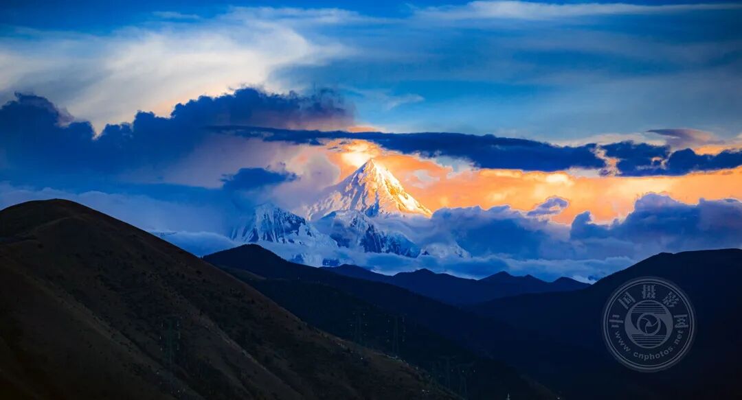新都橋鎮(zhèn)貢嘎觀景臺(tái)。云層裂開的一瞬,“蜀山之王”的身影在天光中顯現(xiàn)出明亮而莊嚴(yán)的輪廓,群山與暗云形成強(qiáng)烈反差。高原天氣瞬息變化中的神圣感在此刻噴涌而出。