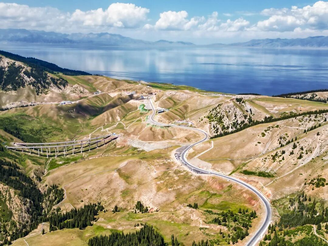 2023年7月9日攝于新疆獨(dú)庫。云漫雪嶺,路轉(zhuǎn)河谷。草地茵茵,一鏡定格天山山水大景。