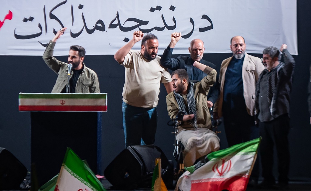 4月21日,伊朗德黑蘭,一名在導(dǎo)彈發(fā)射器爆炸中失去四肢的士兵參加集會(huì)。