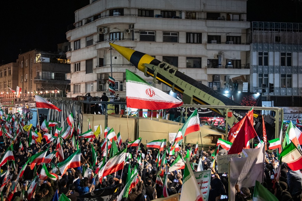 示威活動(dòng)期間,“霍拉姆沙赫爾-4”彈道導(dǎo)彈和“卡德?tīng)枴睂?dǎo)彈出現(xiàn)在了伊朗首都德黑蘭革命廣場(chǎng)上。在此前與美以的沖突中,伊朗多次發(fā)射該型號(hào)導(dǎo)彈打擊以色列及地區(qū)內(nèi)美軍相關(guān)目標(biāo)。伊朗伊斯蘭革命衛(wèi)隊(duì)當(dāng)晚還發(fā)布了此前“真實(shí)承諾4”第100波打擊行動(dòng)中的視頻。