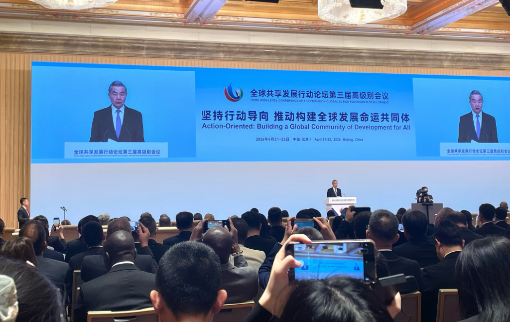 4月22日,全球共享發(fā)展行動論壇第三屆高級別會議在京舉行。中共中央政治局委員、中央外辦主任王毅出席開幕式并致辭。