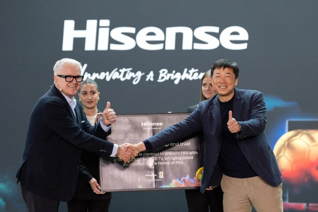 4月15日,海信與FIFA在瑞士蘇黎世總部共同宣布,正式成為2026世界杯VAR顯示技術(shù)官方合作伙伴。官方信息顯示,海信RGB-Mini LED電視將入駐2026世界杯視頻裁判中心,以超高色域與超高色準的畫質(zhì)表現(xiàn),清晰還原比賽現(xiàn)場細節(jié),助力視頻助理裁判精準判罰。