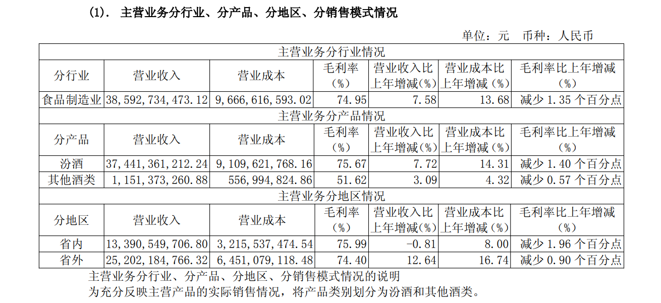 此外,按地區(qū)劃分,去年,山西汾酒省內(nèi)實(shí)現(xiàn)營(yíng)收133.91億元,同比下降0.81%;省外營(yíng)收252.02億元,同比增長(zhǎng)12.64%。分渠道來(lái)看,直銷、團(tuán)購(gòu)、電商期內(nèi)銷售收入為25.00億元,同比增長(zhǎng)6.89%;批發(fā)代理銷售收入為360.93億元,同比增長(zhǎng)7.62%。