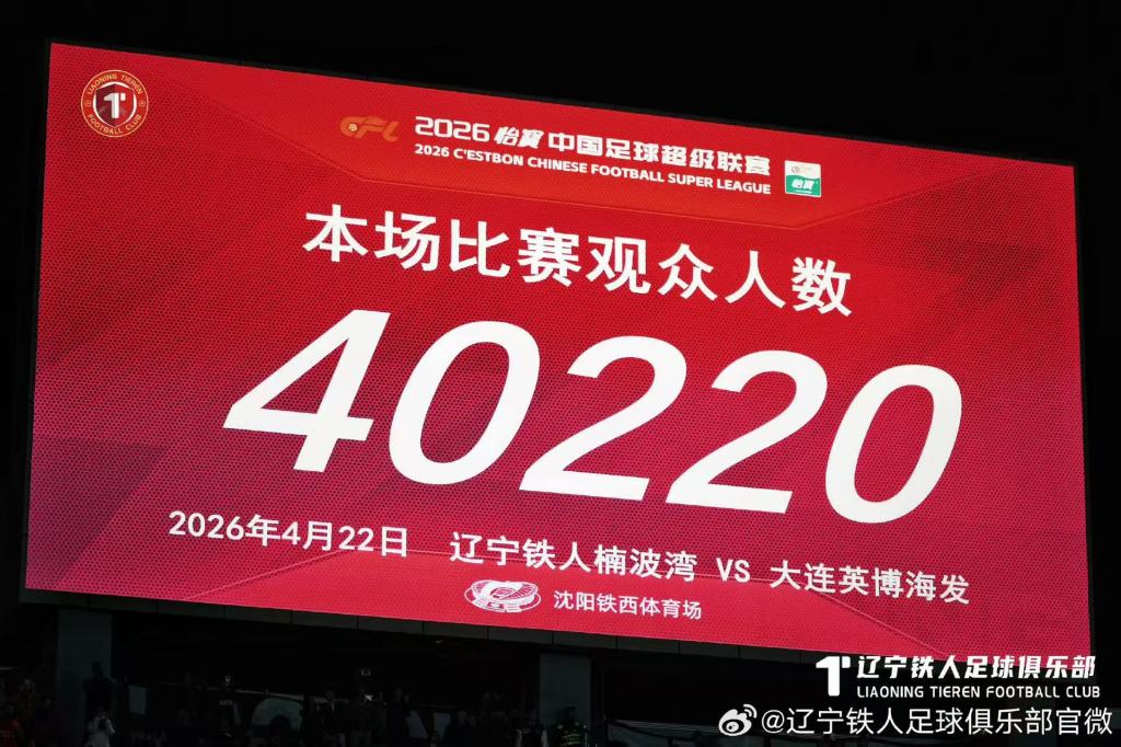 北京時間4月22日晚間,中超聯(lián)賽第七輪遼寧德比,遼寧鐵人坐鎮(zhèn)主場沈陽鐵西體育場迎戰(zhàn)大連英博,本場比賽共有40220名觀眾來到鐵西體育場觀戰(zhàn),其中客隊(duì)球迷近6000人。據(jù)統(tǒng)計(jì),這是鐵西體育場首次突破4萬人,也創(chuàng)下了該體育場的歷史最高觀眾人數(shù)紀(jì)錄。