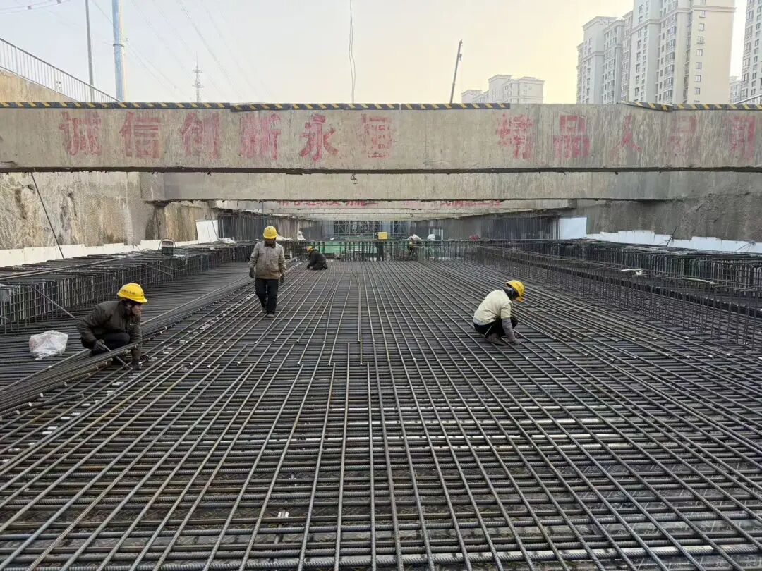 記者在南京段仙林湖站至棲霞站區(qū)間看到,仙林湖站高架結(jié)構(gòu)已完成,棲霞站處于土方開挖階段,現(xiàn)場(chǎng)龍門吊、挖掘機(jī)等多臺(tái)設(shè)備有序作業(yè),不時(shí)有裝滿渣土的卡車出入圍擋區(qū)域,工人們?cè)阡佋O(shè)地下部分頂部的鋼筋結(jié)構(gòu)。
