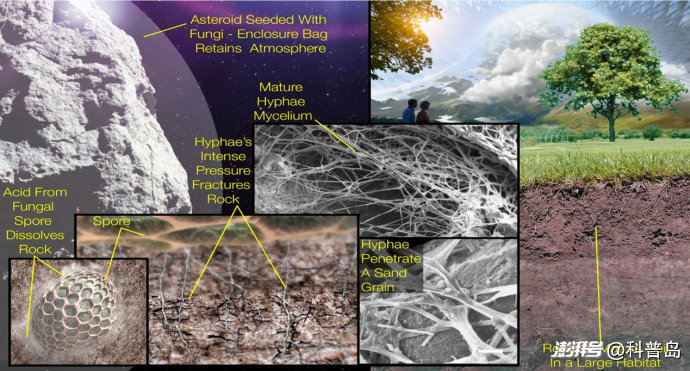 通過(guò)在小行星上播種真菌來(lái)制作太空棲息地土壤的方法(圖片來(lái)源:NASA)