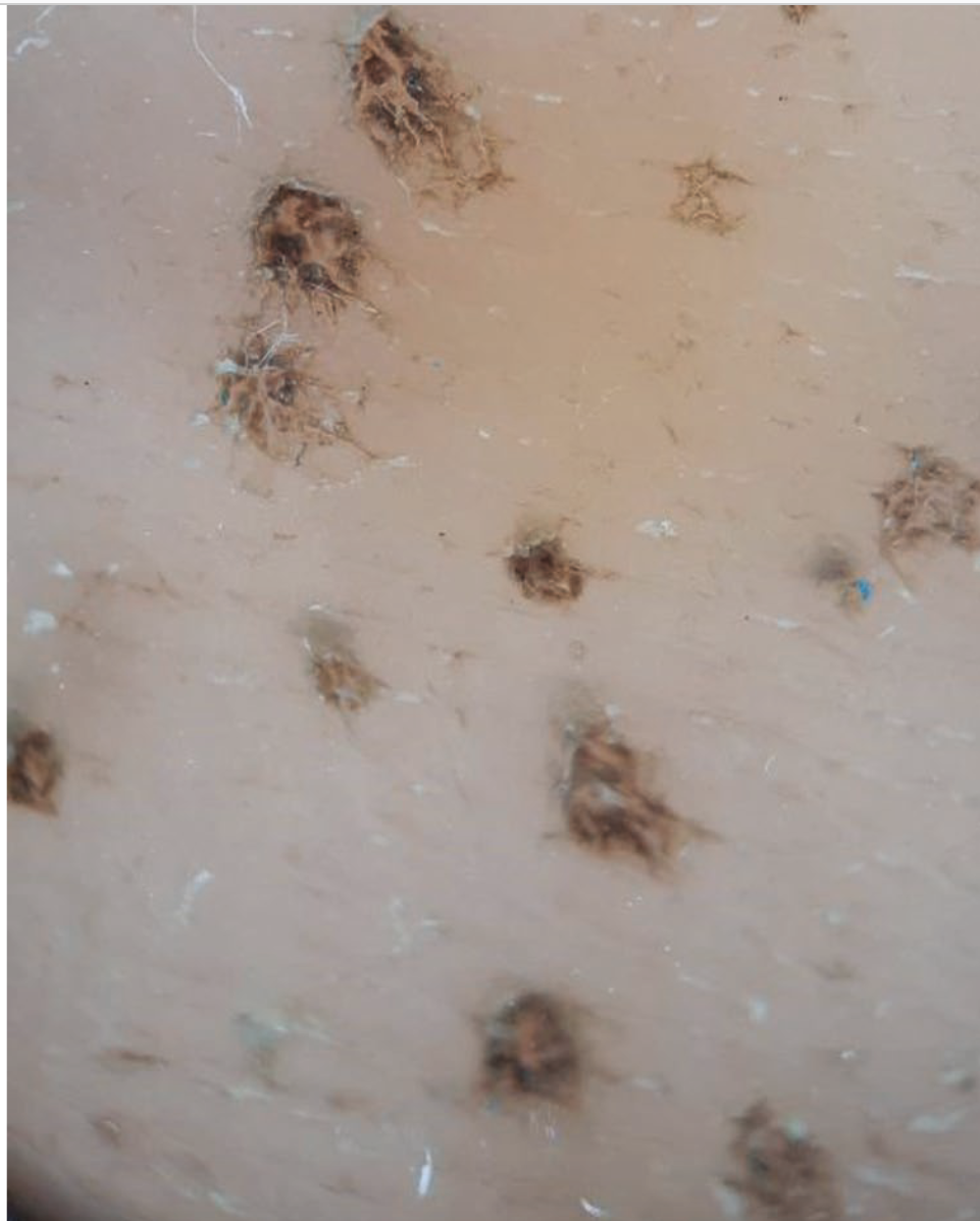 圖2:皮膚鏡下PK表現(xiàn):多處充滿污垢的凹陷。(圖片來源于參考文獻1)