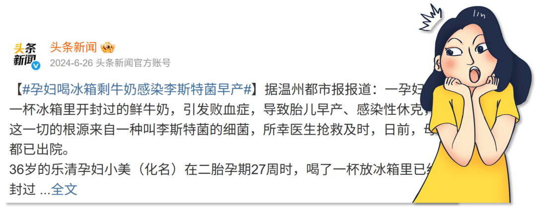 2024年,溫州樂(lè)清一位36歲的孕婦小美,在懷孕27周時(shí)喝下了冰箱里已經(jīng)開(kāi)封過(guò)的鮮牛奶,同樣感染了這種細(xì)菌,結(jié)果胎膜早破、胎兒宮內(nèi)缺氧,不得不緊急剖腹產(chǎn)。寶寶出生后不久,就出現(xiàn)了感染性休克。