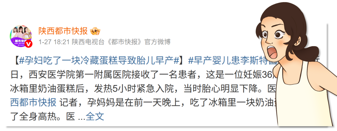 去年5月,一名懷孕36周的準(zhǔn)媽媽,就因?yàn)槌粤吮淅锬贸龅睦洳厥澄铮腥纠钏固鼐?,最終不幸流產(chǎn)。