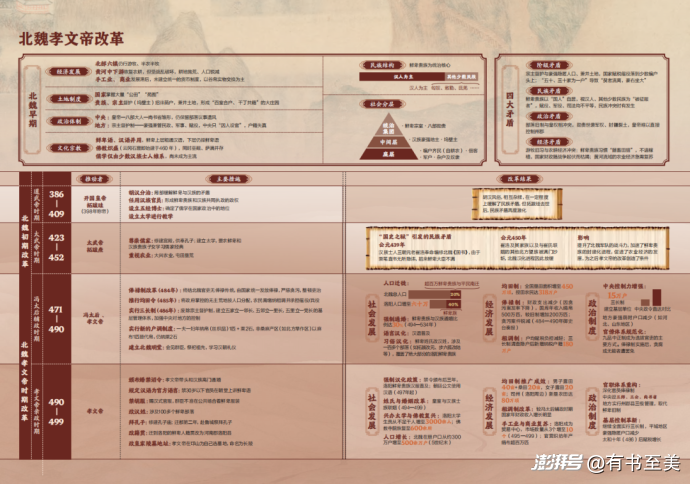 “孝文帝改革”專題用一張清晰的宏觀圖表,展現(xiàn)改革前后的社會結構變遷與階段性策略推進。