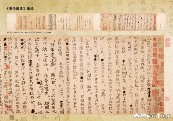 還有司馬光《資治通鑒》手稿、北齊楊子華《北齊校書圖》(宋摹本)《北齊勘書圖》,帶我們穿越千年前的編輯部,看古人如何組織編撰、審讀、校對,仿佛看到了《資治通鑒》的誕生過程。