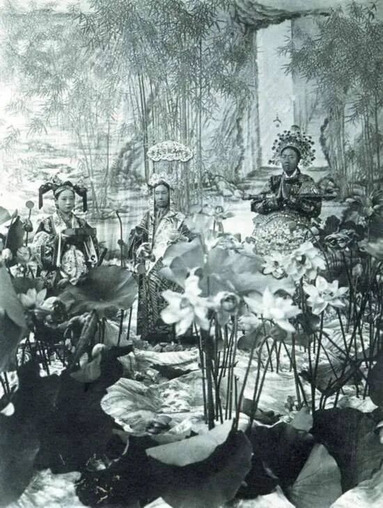 ▲慈禧太后的“cosplay”,左起:四格格、慈禧、李蓮英。圖源:網(wǎng)絡(luò)