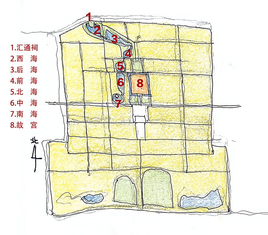 鄭光中的家中留存著一幅畫作,是他于2019年手繪的《什剎海暢想》,這幅作品畫如其名,描繪了什剎海在他心中理想的樣子:在畫中,什剎海體校等單位已妥善遷出,違規(guī)的多層建筑都已被拆除;小前海的生態(tài)被恢復(fù),河道也被重新疏通,溝通了前海與后?!?/p>