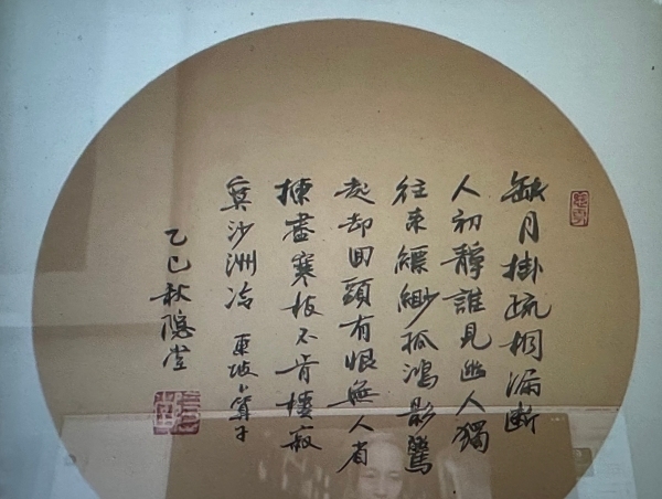 更難得的是,為了讓我更直觀地了解他的工作環(huán)境,艾朗諾教授通過(guò)視頻向我“展示”了他的辦公室。只見(jiàn)他身后整面墻從地面延伸至天花板,被白色書(shū)架整齊覆蓋,書(shū)架分隔成均勻的小格,每一格都塞滿了書(shū)——有精裝本、平裝本,也有一些略顯陳舊、紙頁(yè)微微泛黃的舊書(shū)。房間中央是一張黑色的小圓桌,配有兩把黑色椅子??臻g雖滿,卻秩序井然。他告訴我,書(shū)架上的書(shū)一側(cè)為中文,另一側(cè)為英文。他還向我展示了幾幅“漂亮”的書(shū)法作品,其中一幅是蘇軾的《卜算子·黃州定慧院寓居作》:“缺月掛疏桐,漏斷人初靜。誰(shuí)見(jiàn)幽人獨(dú)往來(lái),縹緲孤鴻影。驚起卻回頭,有恨無(wú)人省。揀盡寒枝不肯棲,寂寞沙洲冷?!卑手Z教授解釋說(shuō),這首詞是蘇東坡被貶黃州后寫(xiě)下的第一首詞,夜深人靜時(shí),他獨(dú)自外出散步,見(jiàn)一只孤鴻在冷空中盤(pán)旋,無(wú)法棲息——“其實(shí)寫(xiě)他自己?!边@幅書(shū)法作品由學(xué)者鄭培凱親筆題寫(xiě),并贈(zèng)予艾朗諾。